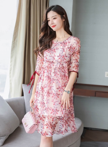 Đầm suông công sở họa tiết in hoa