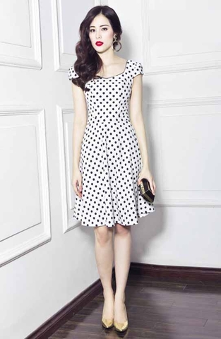 Đầm chấm bi ôm xòe
