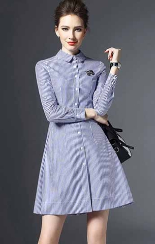 Với các chị em có thân hình không cân đối hoặc hơi mập việc lựa chọn mẫu đầm xòe kẻ sọc chính là giải pháp an toàn cho các chị em.
